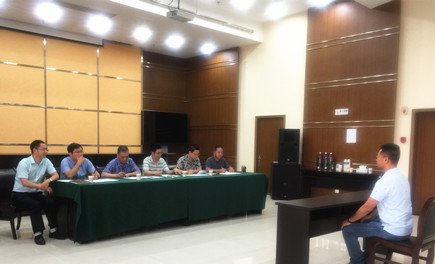 公司組織征費系統收費員崗位招聘面試7月6日下午,公司在26樓會議室開展2017年公開招聘收費員面試工作。總經理張建平、副總經理董阿林親臨現場指導工作。