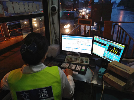 圖為高峰時期的ETC出口車道情況 為保暢通,負(fù)責(zé)ETC車道的工作人員要時刻盯著過往的車輛,對于ETC操作系統(tǒng)上顯示的誤闖車,他得馬上示意司機(jī)停車,用人工操作系統(tǒng)讀卡付費(fèi)。遇ETC車輛可直接通過,不必停車取下OBU中的ETC卡再人工刷一遍,大大節(jié)省了ETC車輛在非正常情況下的通站時間。看著ETC車道源源不斷的車流,收費(fèi)員小孫一邊揉著眼睛一邊說:“操作起來還蠻順手的,就是有的司機(jī)開著遠(yuǎn)光燈過來,要第一時間辨別車牌號與電腦流水相不相符,眼睛被刺得直冒金星,很痛很吃力。” 在ETC車道給非ETC車輛增加一個臨時通道的大膽嘗試,一改以往誤闖車輛進(jìn)入ETC車道后要么引導(dǎo)到旁邊人工車道收費(fèi),要么就是先手動放行,再將通行卡拿去人工車道作整車插入操作,不僅需要登記和旁站等手續(xù),又給后方車輛造成不少的等待時間。而現(xiàn)在的一個出口,兩個操作系統(tǒng),既能在第一時間讓誤闖車輛順利通行,又能保證ETC車輛不用人工刷卡就能正常地快速通過。在飽和狀態(tài)下,其通過率較之前提升12%,通行效率顯著提升,有效減少了內(nèi)廣場擁堵,減輕主線分流壓力。 鄭瑛芝