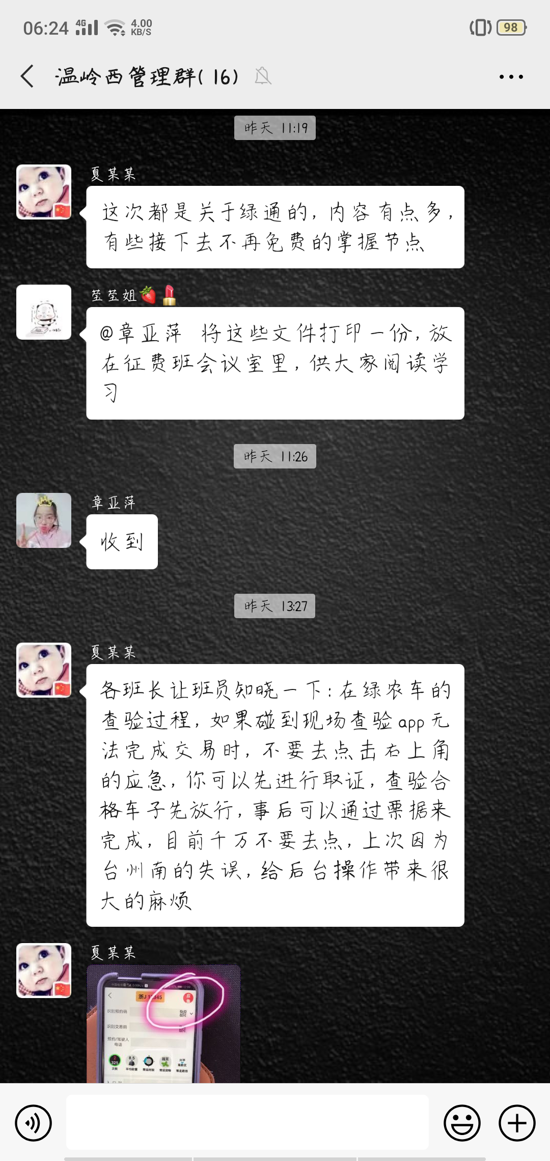 圖為需要學(xué)習(xí)的各個文件內(nèi)容 培訓(xùn)采取集中學(xué)習(xí)與線上學(xué)習(xí)相結(jié)合,理論知識與現(xiàn)場操作相結(jié)合、互動交流與相互提問相結(jié)合的方式開展,通過釘釘、微信等學(xué)習(xí)平臺,每天,各班班長組織班員開展崗前五分鐘提醒、崗后班組集中學(xué),確保每一名收費人員能夠熟練掌握新收費系統(tǒng)的各項操作流程。此外,各班班長及時梳理匯總收費員們在實際操作中遇到的問題,并上傳至管理群,群中全員參與,一起討論學(xué)習(xí)。遇到無法解決的問題時,所負責(zé)人第一時間與上級主管部門溝通,以尋求最佳解決方案,并發(fā)布到群里,明確操作流程和統(tǒng)一相關(guān)政策解釋工作。 本次培訓(xùn)不僅使全所每一位員工鞏固了前期業(yè)務(wù)知識,也更加深入掌握了收費新系統(tǒng)的操作流程以及新收費政策,為恢復(fù)正常收費穩(wěn)步進行奠定了堅實的基礎(chǔ)。 鄭霞霞