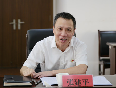 圖為公司黨委副書(shū)記、總經(jīng)理張建平介紹公司黨建工作情況