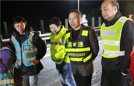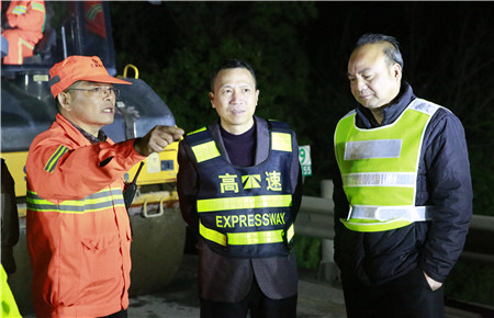 圖為集團(tuán)總經(jīng)理張建平夜訪養(yǎng)護(hù)施工一線