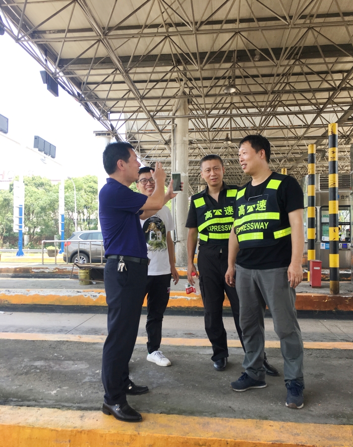 圖為章海峰在臺州收費所檢查收費崗亭 在各所、中心,章海峰關切詢問在崗人員的家里情況,仔細檢查收費站崗亭設備設施等修復運行情況,以及走訪員工宿舍區、辦公樓。他對各所、中心災后及時恢復工作給予贊賞,并充分肯定大家在臺風期間仍堅守崗位,上下一心,加班加點恢復站所的那種不怕苦的精神。