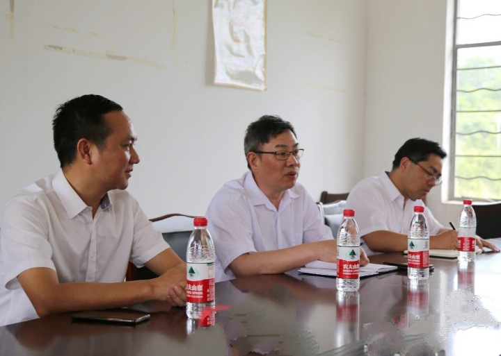 圖為陳文波與村兩委班子以及駐村指導員座談交流 在塘上村的村委會會議室里,陳文波與村兩委班子以及駐村指導員進行座談交流。塘上村村支書、村長,以及其他村干部分別向陳文波等介紹了村里近期的基礎設施建設、村民生產生活、產業扶貧措施、文化禮堂建設等工作中的重點難點問題,同時代表村民感謝臺州高速集團長期以來對塘上村的支持和幫助。