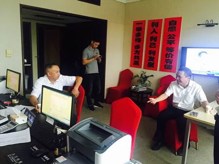圖為集團(tuán)副董事長、總經(jīng)理張建平在天臺收購點詳細(xì)詢問收購工作具體開展情況 張建平向各地方政府前期對公司股權(quán)收購工作的支持表示感謝,他介紹了當(dāng)?shù)嘏_州高速股權(quán)收購進(jìn)展情況,同時闡明收購工作中存在的困難,需要地方政府繼續(xù)對我們的工作給予支持和幫助。三地政府都表示一定會全力支持這項工作。仙居縣分管公司股權(quán)收購的常務(wù)副縣長說,“放心吧,我們一起想辦法,先從持股較多的法人股入手,再化大力氣做小股東工作,一定會圓滿完成任務(wù)。” 張建平一行先后來到三地股權(quán)收購點,向收購一線的工作人員表示親切的問候。張建平對大家的工作給予肯定,感謝所有人勤勤懇懇,無私付出,并希望大家繼續(xù)努力,共同實現(xiàn)目標(biāo)。工作人員詳細(xì)介紹了日常具體工作方法,他們緊跟公司股權(quán)收購總體布局,并結(jié)合當(dāng)?shù)靥厥馇闆r,因地制宜,有序靈活地開展股權(quán)收購工作。