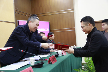 圖為集團(tuán)總經(jīng)理張建平給先進(jìn)個(gè)人頒發(fā)獎(jiǎng)狀